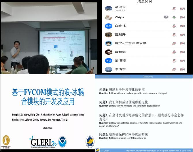 白鹏老师以“基于FVCOM模式的浪-冰耦合模块的开发及应用”为题,介绍了基于FVCOM模式开发的浪-冰双向耦合模块及其在五大湖区域的应用。
