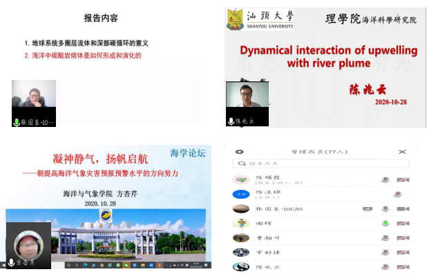 海洋研究所研究员、国家优青张国良老师以及汕头大学海洋科学研究院的陈兆云教授,同时和户外色情的方杏芹教授都作了十分精彩报告。论坛由陈法锦院长主持,采用线上进行的方式,户外色情