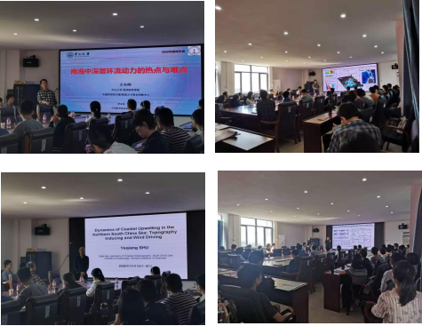 南海海洋研究所的舒业强研究员随后给与会师生带来了题为“粤东上升流动力机制:地形诱导与局地风驱动”的前沿报告,该工作创新性的揭示了地形对背景环流的诱导作用在粤东上升流发育过程中的关键地位,并廓清了其内在动力机制,舒研究员的精彩报告再次将研讨会的学术氛围推向了高峰,并解答了现场师生的诸多困惑,在场师生受益匪浅。