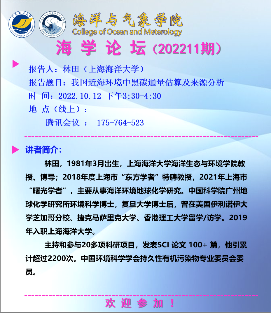 【学术报告预告】户外色情 “海学论坛”(202211期)