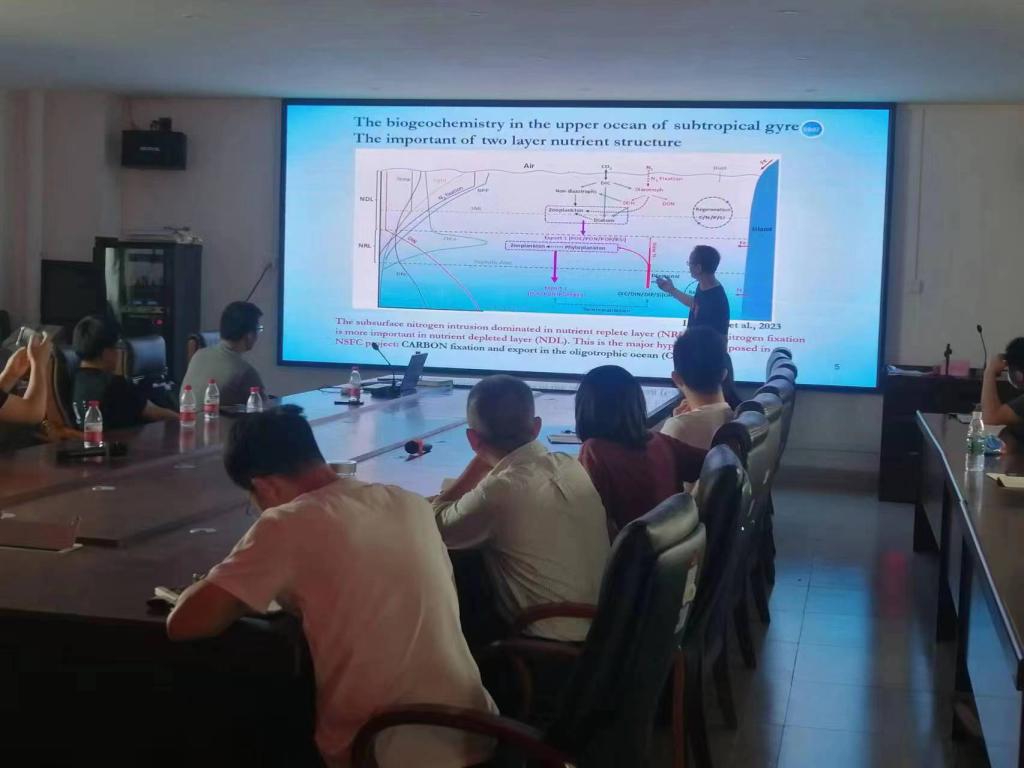 周宽波副教授做了题为“北太平洋亚热带环流圈的固氮作用及其对碳输出的影响”,发现较强的固氮作用并不一定导致高的有机碳输出,而有机碳的输出更多是跟营养跃层的转变有关。