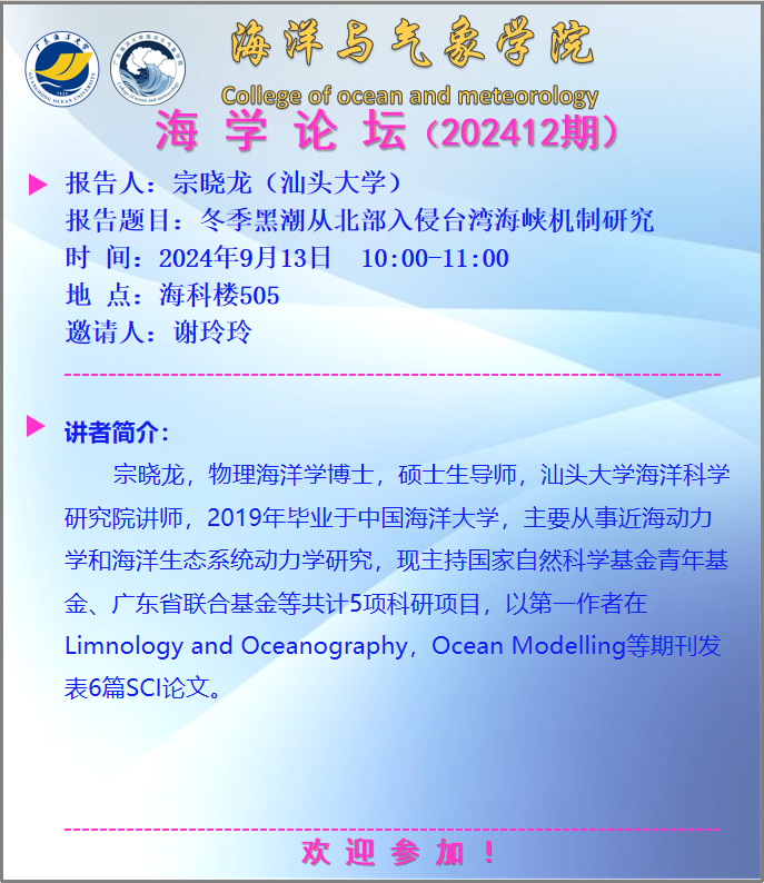 【学术会议通知】户外色情 “海学论坛”(202412期)
