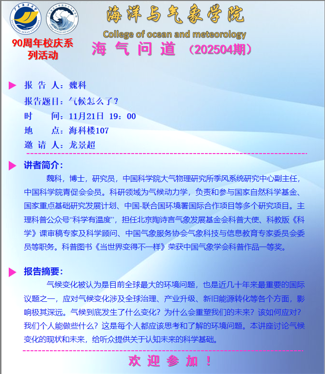【学术报告通知】户外色情 “海气问道”(202504期)