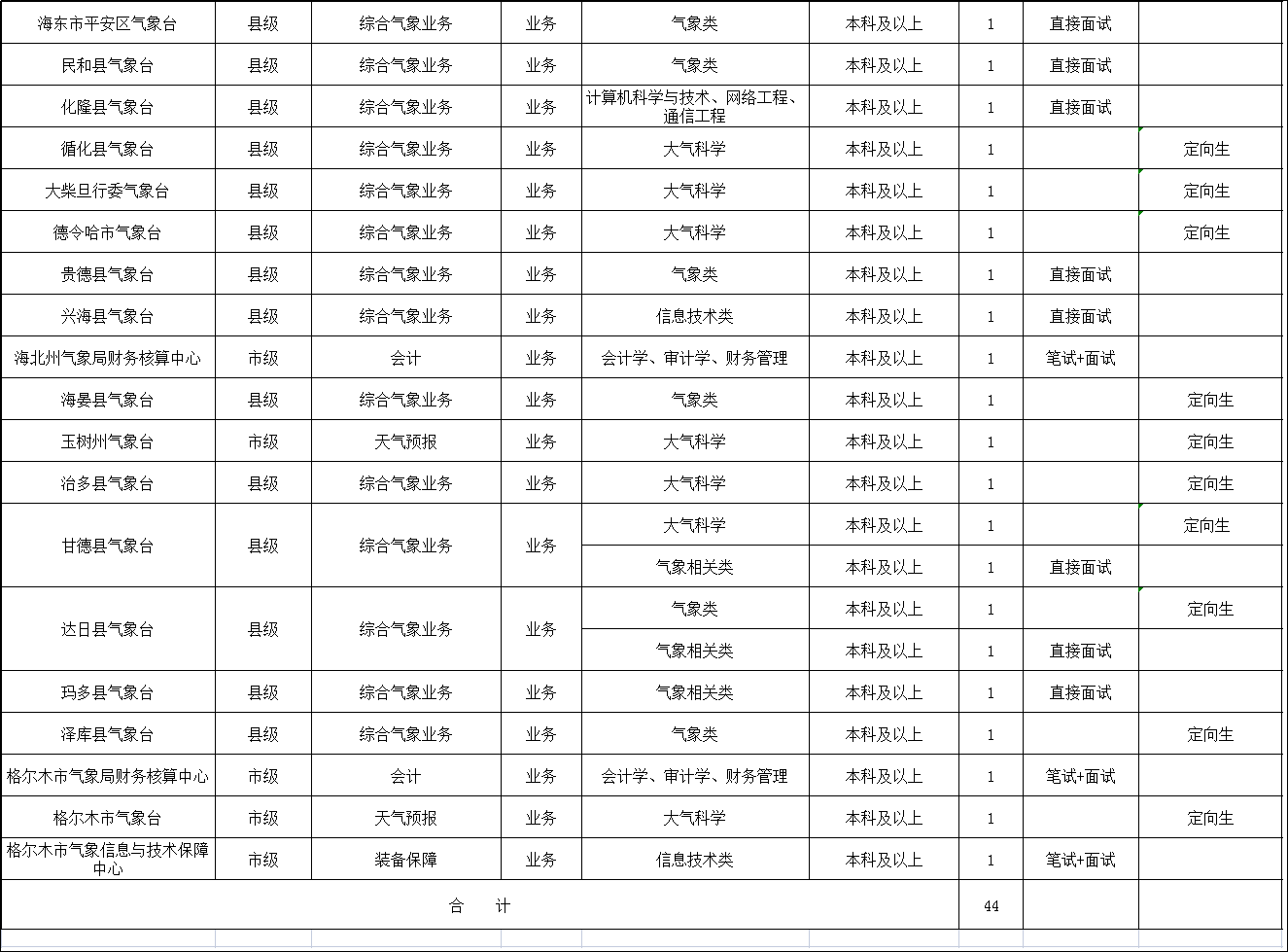 1.气象类专业岗位和县级岗位采取直接面试方式。具体事宜另行通知。