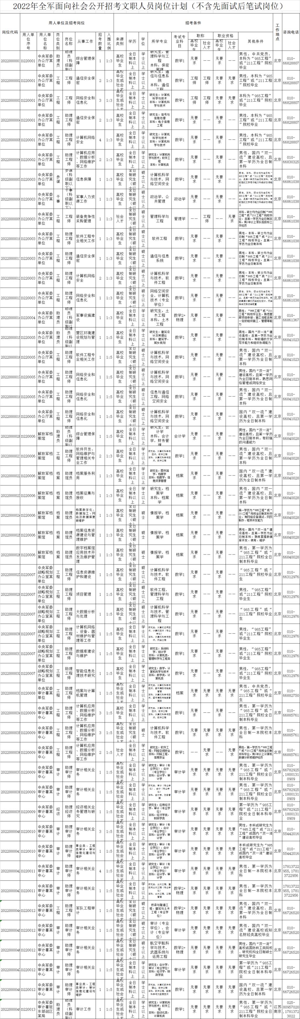 2022年全军面向社会公开招考25616名文职人员