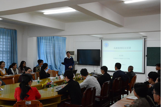 副院长谢玲玲主持,张书文院长、陈法锦副院长、邓立平教授等院教师以及研究生、本科生等60余人聆听了报告。