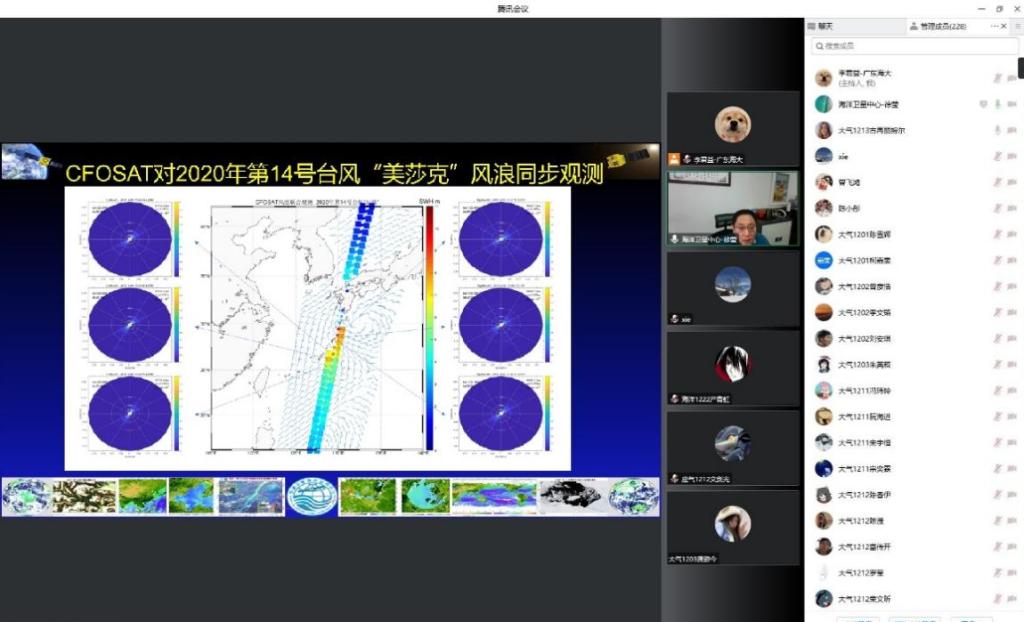 于腾讯会议平台开展线上《研究生联合培养系列讲座》,邀请联培基地研究生导师,国家卫星海洋应用中心徐莹处长、叶小敏研究员为联合培养研究生及在校本科生做我国海洋卫星遥感监测及应用方面的工作介绍。