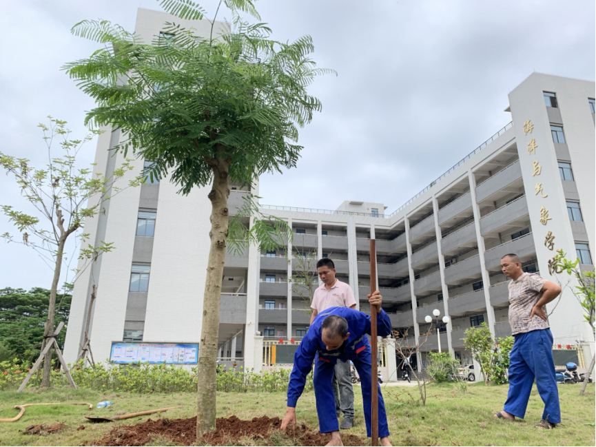 劳作中,同学们裤腿上沾满了泥土,一张张脸颊旁流下了汗珠,但每个人都流露出自豪、愉悦的神情,以最诚挚的真心维护着校园春日里的葱葱绿意与万紫千红。海气1193班班长周树廷同学表示:“除了拍摄毕业照,大家能再聚在一起的机会并不多了。临近毕业组织的这一次植树活动,也算是给同学们在海大留下一份念想。以后的日子里,海大的日落星起,云卷云舒,就拜托这颗凤凰木替我们欣赏了。在不久的九十周年或是百年校庆,等着我们带着希冀,带着热情,在一个微风和煦的午后,来一场久别重逢的邂逅。时间会证明一切的,我们一直都在!”