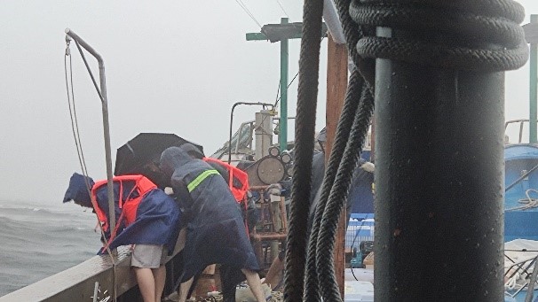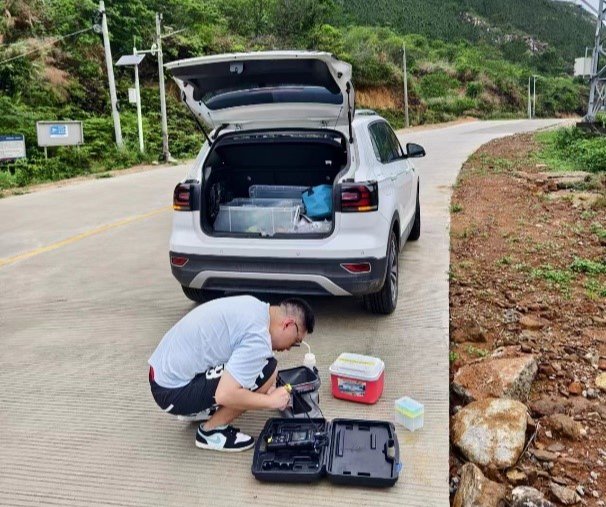 在这次调查中,团队成员勇敢地挑战恶劣的风浪、雨雾与雷暴,完成了全海域范围的气象观测、走航CTD和ADCP观测,并进行了25个大面站位观测,以及1个站位长达25小时的连续监测。同时,团队还广泛开展了周边流域的河水与地下水观测,获取了大量珍贵而详实的原始数据与样品。
