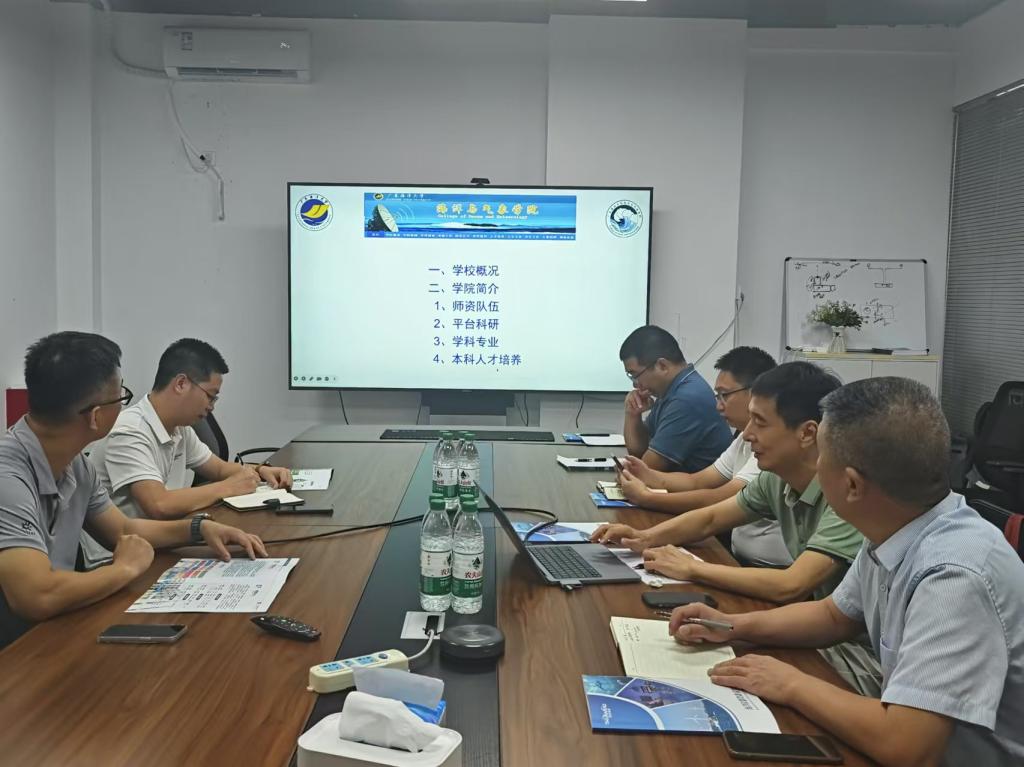 副院长薛宇峰、党委副书记胡森林、海洋科学系主任谢辉、副主任杨丽娜、大气科学系副主任曹宁一行五人于8月25–28日赴广州市开展了系列调研走访活动,与广东省气象台、广东省气象服务中心、广东航天宏图信息技术有限公司、自然资源部南海预报减灾中心、广州至远海洋科技有限公司、广东海启星海洋科技有限公司进行了深入交流。
