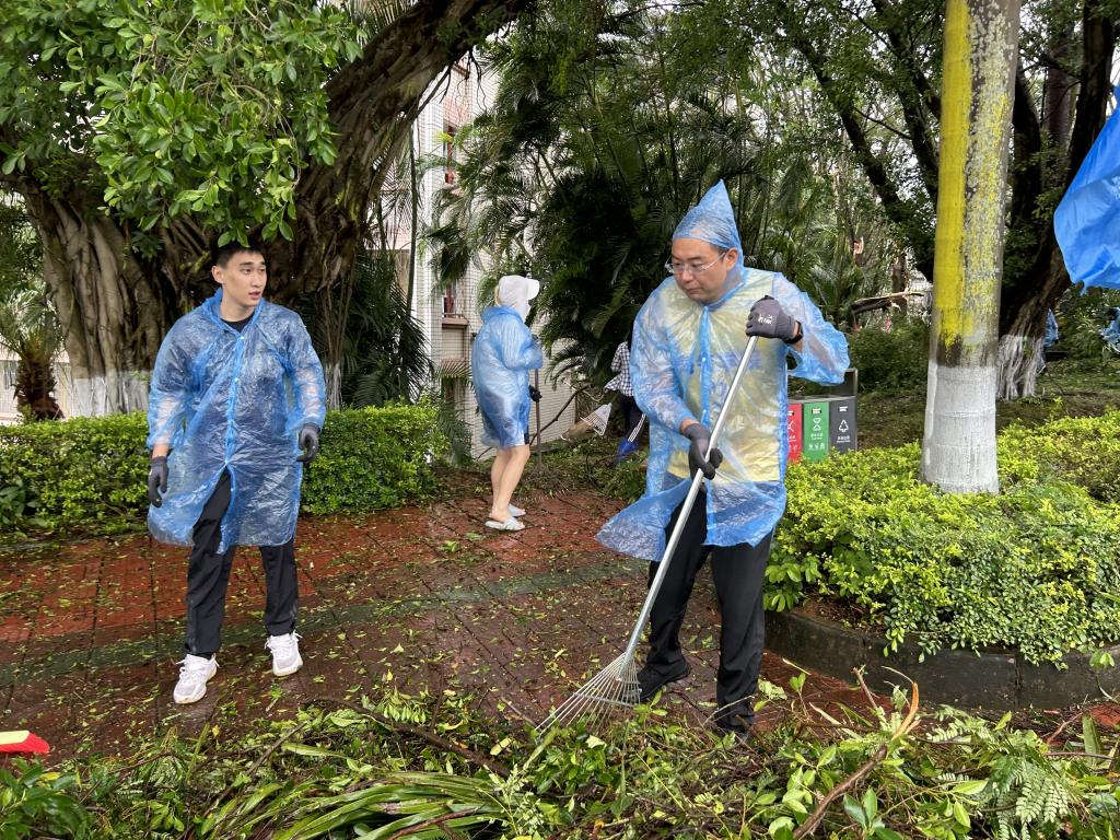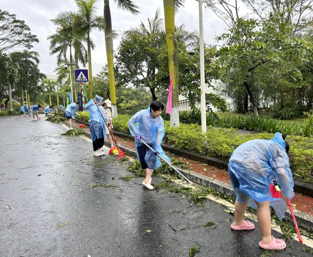 党委书记毛琪、院长谢玲玲等领导班子成员带领下,各教学系、党支部、班级迅速组织起来,形成多个分工明确、协同作战的清洁小组,投入校园道路疏通、绿化带强险等工作中去。师生们无惧风雨,在学校分配的包干区域挥洒汗水,高效圆满完成了清理任务。