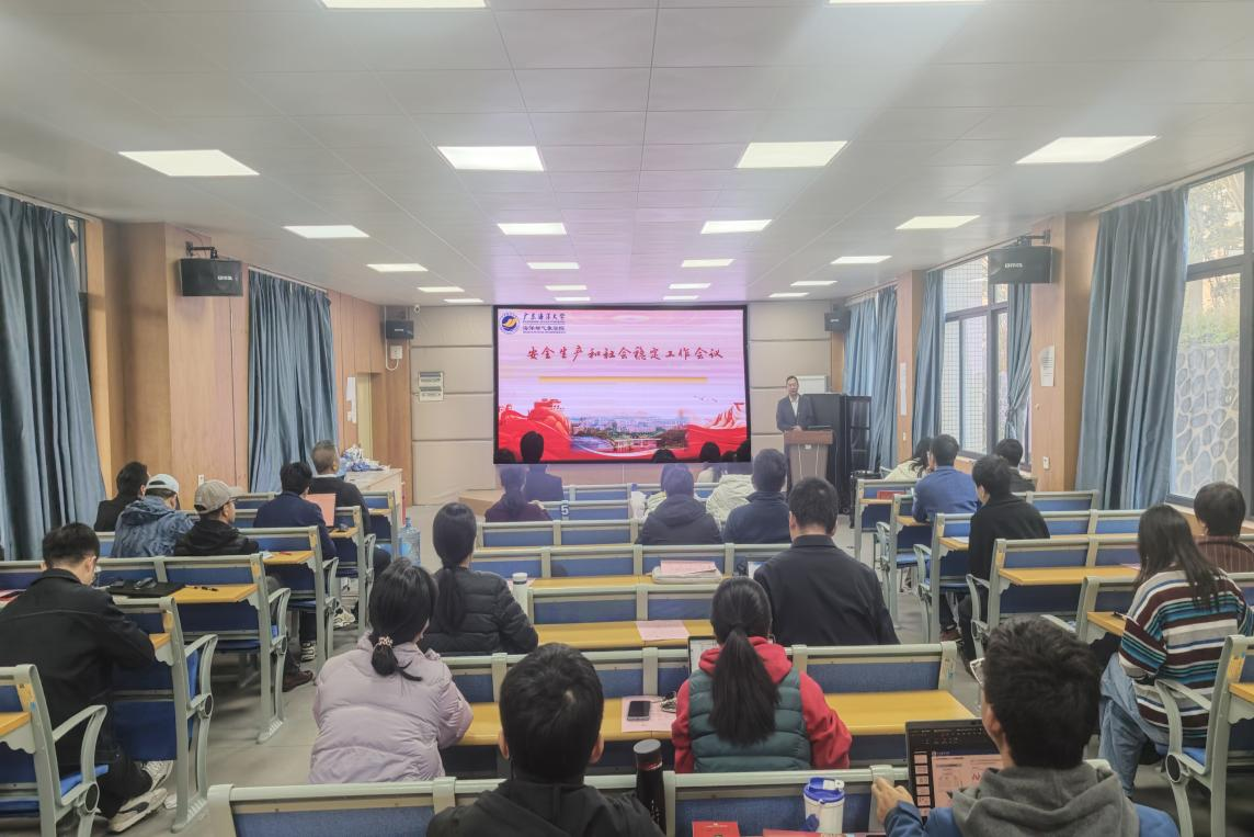 党委书记毛琪在海科楼107会议室主持召开了安全生产和社会稳定全院工作大会,全体教职工参加了会议。