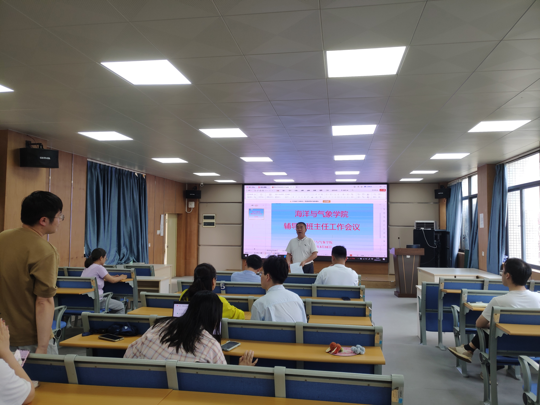 实际,对近阶段重点工作进行了全面部署:第一,筑牢安全底线,胡森林传达学习学校《关于2026年清明节、劳动节和端午节放假安排的通知》,重点指出要做好清明节假期的安全教育与管理,严格落实离返校制度,确保学生人身与财产安全;第二,强化学风建设,班主任和辅导员要深入课堂与宿舍一线,通过加强检查、开展帮扶、树立典型等方式,营造积极向上的学习氛围;第三,关注学生身心健康,积极鼓励学生参加户外色情