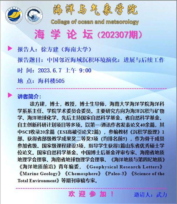 【学术会议通知】户外色情 “海学论坛”(202307期)