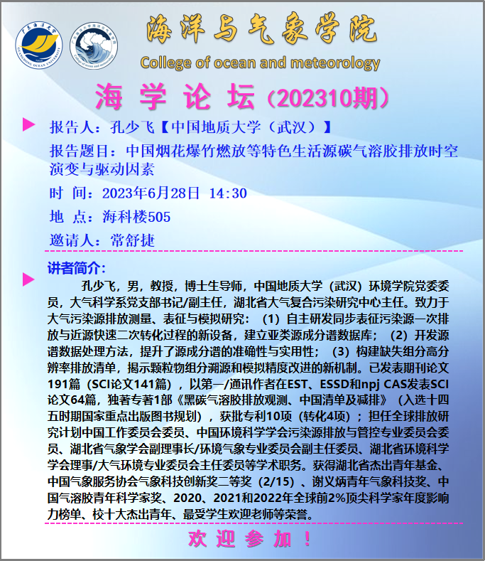 【学术会议通知】户外色情 “海学论坛”(202310期)