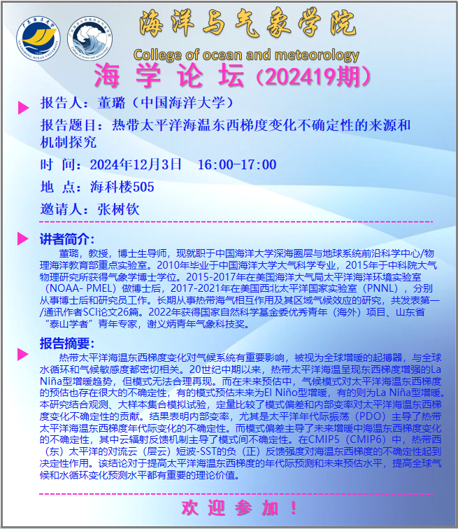 【学术会议通知】户外色情 “海学论坛”(202419期)