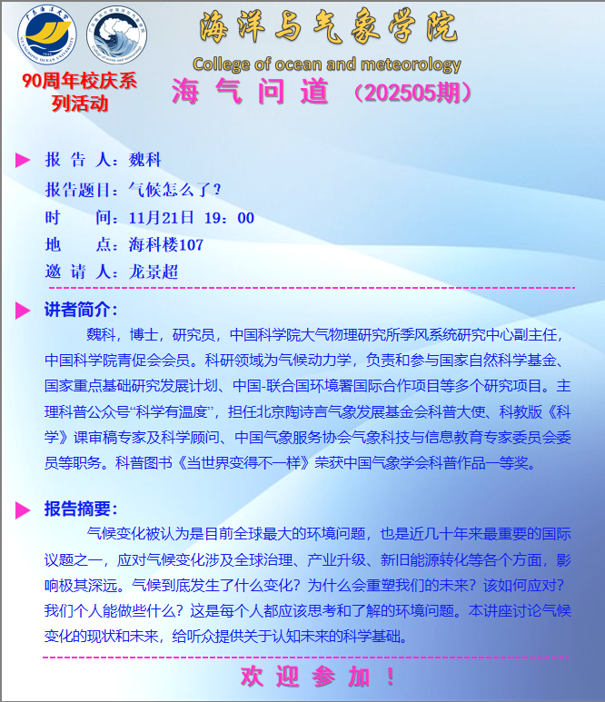 【学术报告通知】户外色情 “海气问道”(202505期)