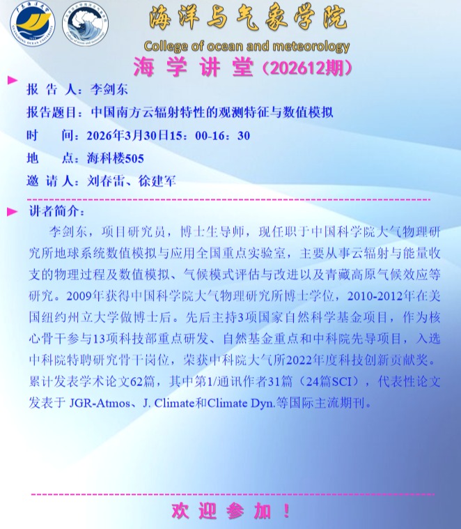 【学术会议通知】户外色情 “海学讲堂”(202612期)