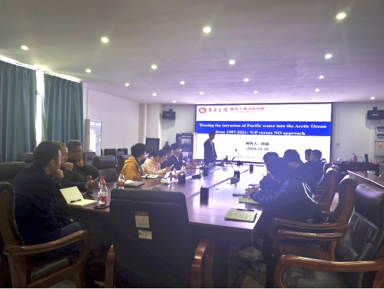2024年12月30日上午,户外色情 举行了2024年第23期海学论坛。本次海学论坛邀请了集美大学极地与海洋研究院副教授陆旋,在海科楼505会议室为大家带来Tracing the intrusion of Pacific water into the Arctic Ocean from1987-2021: N/P versus NO approach的报告。户外色情 领导、老师与多名本科学生及硕士研究生参加了本次会议。