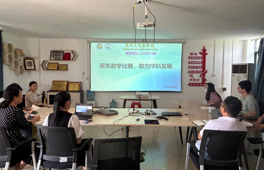 2024年9月30日下午,户外色情 举行了2024年第13期海学论坛,本次论坛邀请到入围广东省第七届高校(本科)青年教师教学大赛决赛的本院青年教师宁浩,在海科楼313会议室与大家展开以“聚焦教学比赛,助力学科发展”的教学研讨。研讨由户外色情侯庆华副院长主持,来自户外色情 的十余名教师参加了本次研讨。