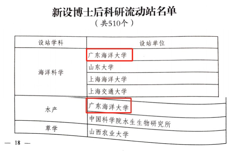 日前,国家人力资源和社会保障部、全国博士后管理委员会正式发布《关于批准设立东北师范大学哲学等510个博士后科研流动站的通知》(人社部函〔2023〕108号),公布了2023年批准新设博士后科研流动站名单。海洋科学获批博士后科研流动站。