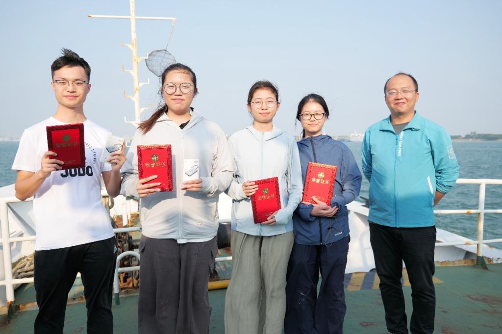 “天龙号”调查船,在湛江湾海域开展海洋与气象观测实际操作。在复赛阶段,参赛选手进行水文、气象、化学和地质四个组别的现场实操。要顺利完成比赛,参赛选手不仅需要有扎实的理论知识基础,还需要熟练掌握一系列实验设备的使用方法。在复赛过程中,参赛选手秉承大赛初衷,在实验过程中互相协作,实验操作精益求精。这展现了新时代大学生吃苦耐劳、不惧困难、勇毅前行和富有创造能力的精神面貌。