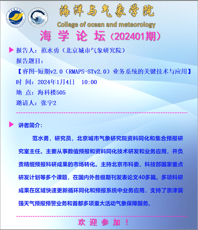 【学术会议通知】海学论坛 2024 01期