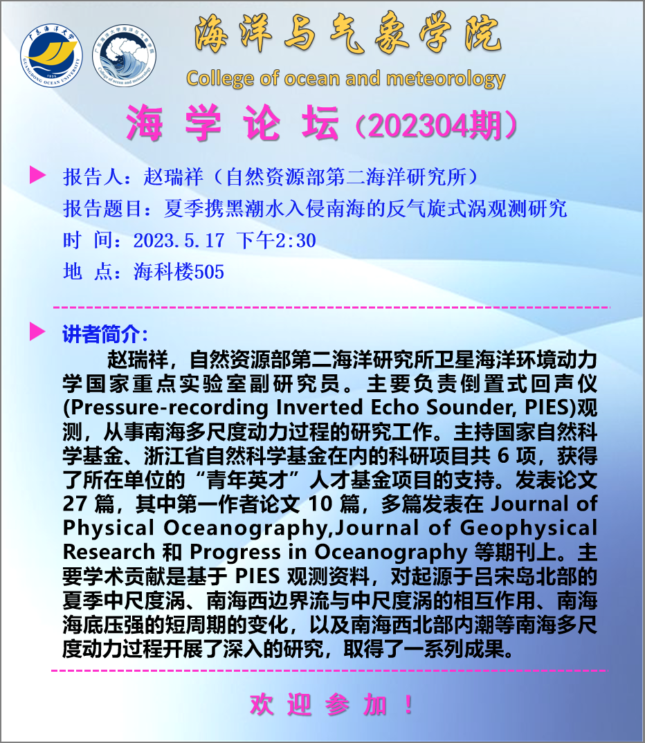 【学术会议通知】海学论坛 2023 04期