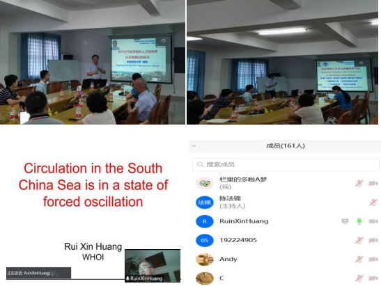的傅刚教授以及美国伍兹霍尔海洋研究所著名海洋学家黄瑞新教授。会议由分别谢玲玲院长和陈法锦副院长共同主持,论坛采取线上线下同步进行的会议方式,不仅有本院师生积极参加,还有许多外单位人士参加会议,参会人数将近两百人。